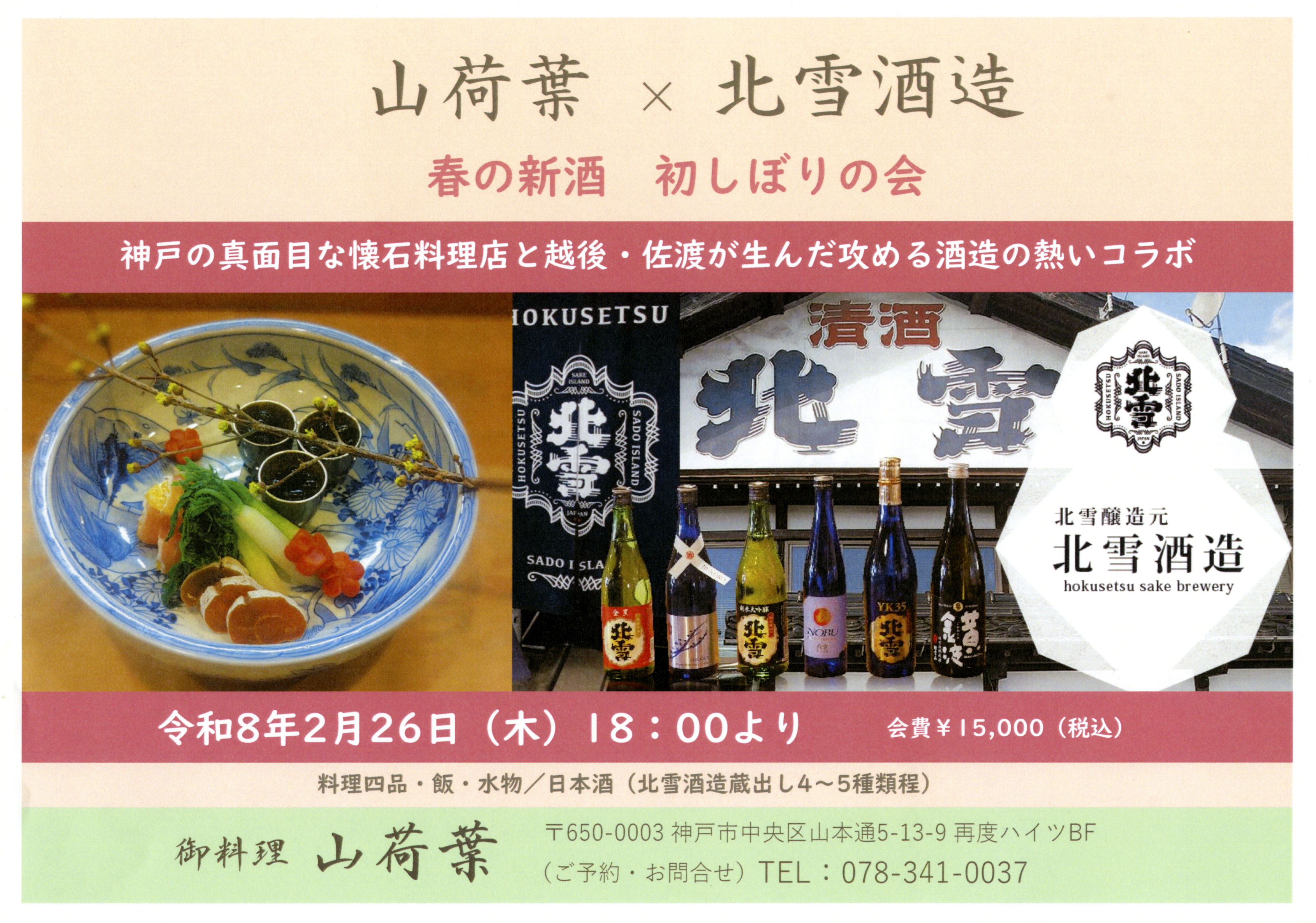 梅香浮動 月黄昏 厳冬期、新酒が揃い始めるこの季節 新潟北雪酒造の酒がやってきます 新春の乾杯を山荷葉でどうぞ日時:2月26日(木)6時会費:15,000円(税込み)